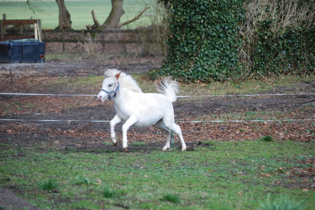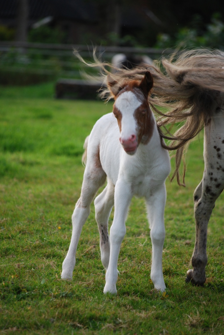 Calista…………ze heeft ons bezig gehouden dit jaar in afwachting van de geboorte van haar veulen. Niet eerder is er een vergissing begaan in de uitgerekende bevallings periode, dit keer wel ! Vanaf 01-06-2017 aan de camerabewaking en de geboortemelder en 6 onrustige weken in gegaan. Tonnetje rond was ze, maar verder geen teken van een aankomende bevalling. Totdat een vriendin zich wist te herinneren dat ik in een app bericht van eind 2016 haar had gemeld dat de laatste bevalling was voorzien voor mid september ! Een reden om deze dame met een gerust hart nog even naar de zomer wei te verplaatsen en te genieten van de vakantie periode zonder onderbrekende nachten. Toch nog een korte vakantie weekje gepland op Vlieland, welke na 3 dagen op 23-08-2017 bruut werd onderbroken met een telefoontje dat er een veulen in het weiland lag ! De hulp troepen aangesproken en geprobeerd zo snel mogelijk weer terug naar huis te komen vanaf een “wadden eiland”. Een kerngezond, volgroeid, gezond en springlevend spierwit merrie veulen van Calista/Hobby Horse Fabio met een voskleurig hoofdje keek mij pienter aan, wat een wonder !!!. Bedankt Calista voor deze mooie ervaring, gewoon in de wei, tussen haar vriendinnen, en een ervaring rijker ……..het is klaar als het klaar is.
